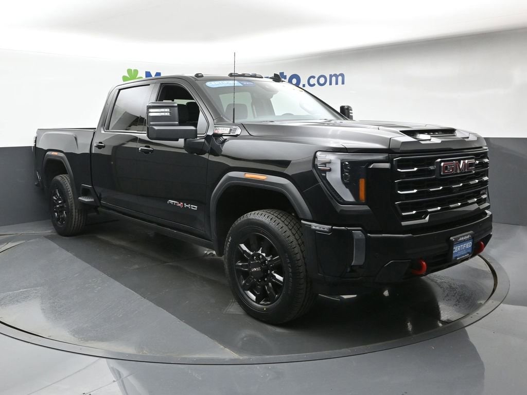 Elevate your driving experience with the exceptional 2024 GMC Sierra 2500HD AT4. This powerful and capable truck is designed to conquer any terrain, while delivering uncompromising comfort and technology. Boasting a Duramax 6.6L V8 Turbodiesel engine, this Sierra 2500HD AT4 delivers an impressive 470 horsepower and 975 lb-ft of torque, ensuring you have the muscle to tackle any job or adventure.Key features of this Sierra 2500HD AT4 include: Duramax 6.6L V8 Turbodiesel engine Power-Retractable Black Assist Steps AT4 Premium Plus Package Spray-On Bedliner with AT4 Logo Rear Underseat Storage (LPO) Bose Premium 7-Speaker Sound SystemElevate your off-road experience with the Sierra 2500HD AT4's impressive capabilities. The advanced 4WD system, Off-Road Suspension, and Hill Descent Control provide the confidence and control you need to tackle the toughest terrain. The AT4 Premium Plus Package further enhances your driving experience with features like the power sunroof, Technology Package, and high clearance steps.Inside, the Sierra 2500HD AT4 offers a premium, well-appointed cabin that caters to your every need. The Perforated Leather-Appointed Front Seat Trim, Heated and Ventilated Seats, and Heated Steering Wheel ensure exceptional comfort, while the Multicolor 15 Diagonal Head-Up Display and Wireless Charging keep you connected and powered up on the go.This 2024 GMC Sierra 2500HD AT4 has been meticulously inspected and certified to ensure it meets the highest standards of quality and reliability. With low mileage and a comprehensive warranty, you can drive with confidence, knowing that this truck is ready to take on your toughest challenges.Experience the ultimate in power, capability, and refinement with the 2024 GMC Sierra 2500HD AT4. Visit our showroom today and let us demonstrate how this exceptional truck can elevate your driving experience.