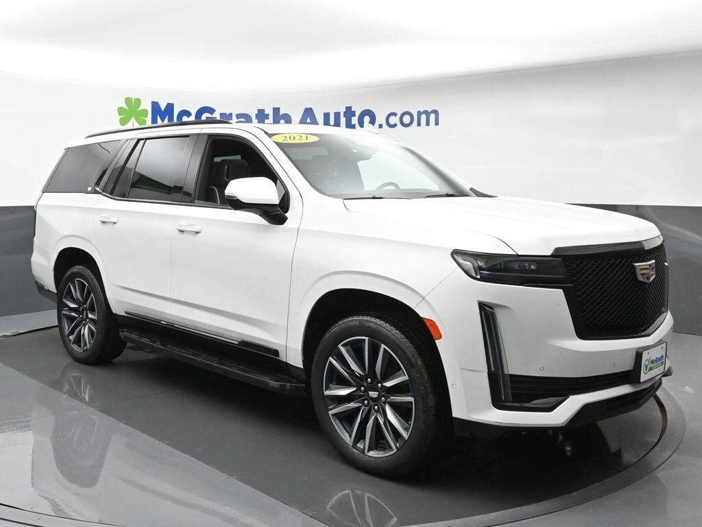 4WD, Black Leather. Clean CARFAX.2021 Cadillac Escalade Sport 6.2L V8 4WDWe're in the customer service business first, the car business second.- H.B. McGrath. Our goal is to offer our customers great vehicles at unmatched prices, but the car business isn't just about the product, it's about the people. Welcome to McGrath, your destination for award-winning automotive excellence! Wwe were voted CBJ's 2024 #1 Coolest Place to Work and winner of 2024 Best of the Best Auto Dealer, Auto Service, and Fleet Dealer. We’re proud to deliver unmatched quality and service. With over 11,000 5-star Google reviews, our customers’ trust and satisfaction drive everything we do. Whether you’re buying, servicing, or building your fleet, experience why McGrath is the top choice for all your automotive needs! If we aren't making our customers happy, we aren't in business. It's as simple as that, and we intend to deliver on the promise: Get More with McGrath.Prices may change at any time and are subject to availability and prior sale. Taxes, title, license fees, and a $180 documentation fee are not included. Pricing reflects all applicable rebates and incentives assigned to the dealer. Example payments are estimates; actual terms vary based on credit approval. APR and payment estimates apply to qualified buyers, not all buyers qualify for advertised rates. Factory cash incentives may not be combined with promotional APR. Fuel economy ratings and driving range figures are based on EPA estimates for new vehicles, and actual mileage and range may vary. Some in-stock vehicles may include a $1,295 Clear Guard Protection package By submitting your phone number online, you consent to occasional SMS or voice calls about our products and promotions; standard messaging rates may apply. Consult dealer for offer eligibility and other details. Factory MSRP is not the final advertised/asking price of the vehicle. Fuel economy figures are official EPA estimates and clearly labeled as such.